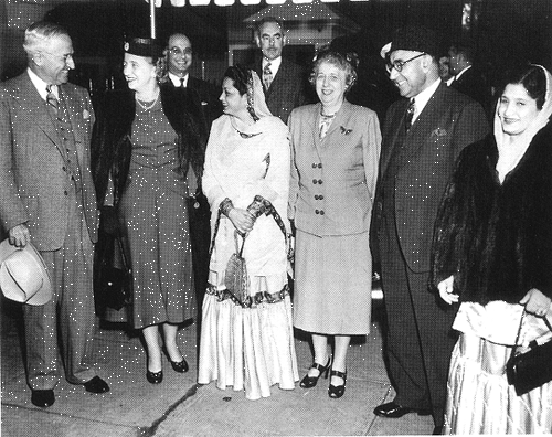 Photo 3, Truman and Liaquat with their families in front of Blair House, Washington, May 1950. Secretary of State Acheson stands behind. (Photo by the U.S. Department of State, courtesy of the Harry S. Truman Library.)