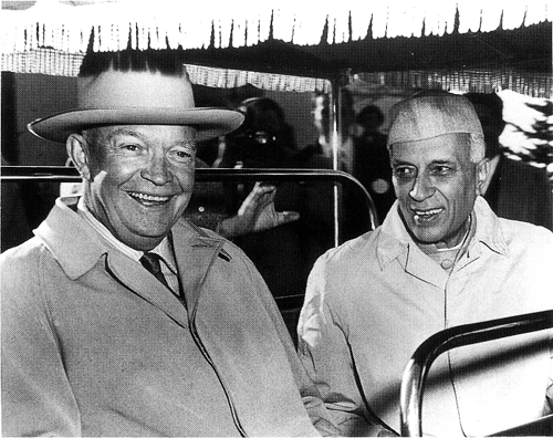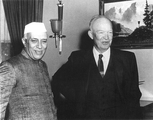 Photo 6, Eisenhower and Nehru pose for photographers following their White House meeting, December, 1956. (Photo by the National Park Service, courtesy of the Dwight D. Eisenhower Library.)