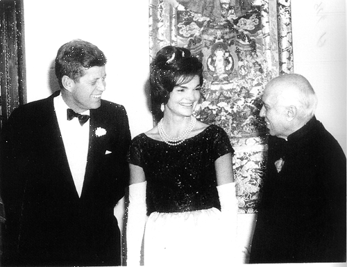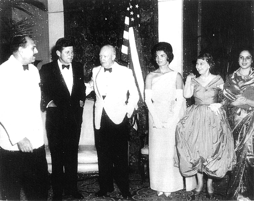 Photo 17, President and Mrs. Kennedy welcome Prime Minister Nehru to a state dinner in his honor at the White house, November 9, 1961. (Photo courtesy of the John F. Kennedy Library.)
