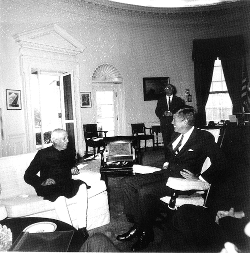 Photo 16, Kennedy and Indian Prime Minister Nehru exchange pleasantries prior to an official meeting at the White House, November 7, 1961. (Photo courtesy of the John F. Kennedy Library.)